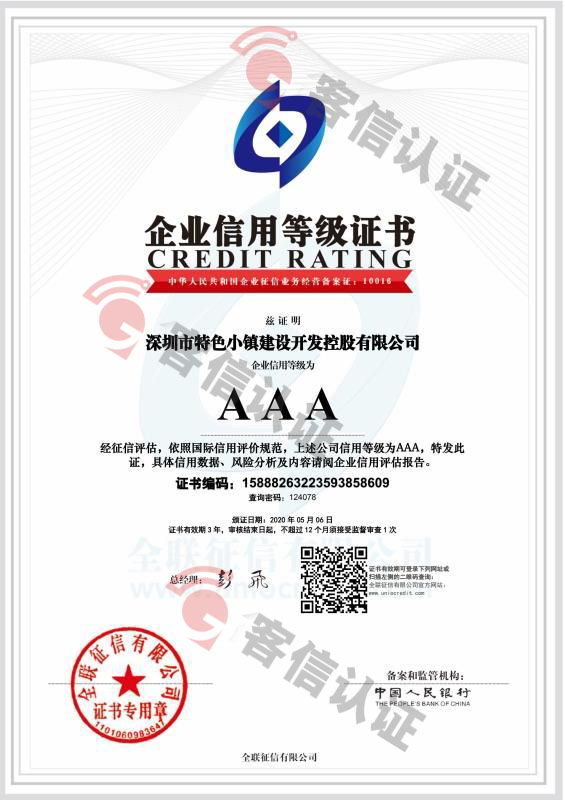 > 恭喜深圳市特殊小鎮(zhèn)建設(shè)開發(fā)控股有限公司獲取AAA信用等級證書