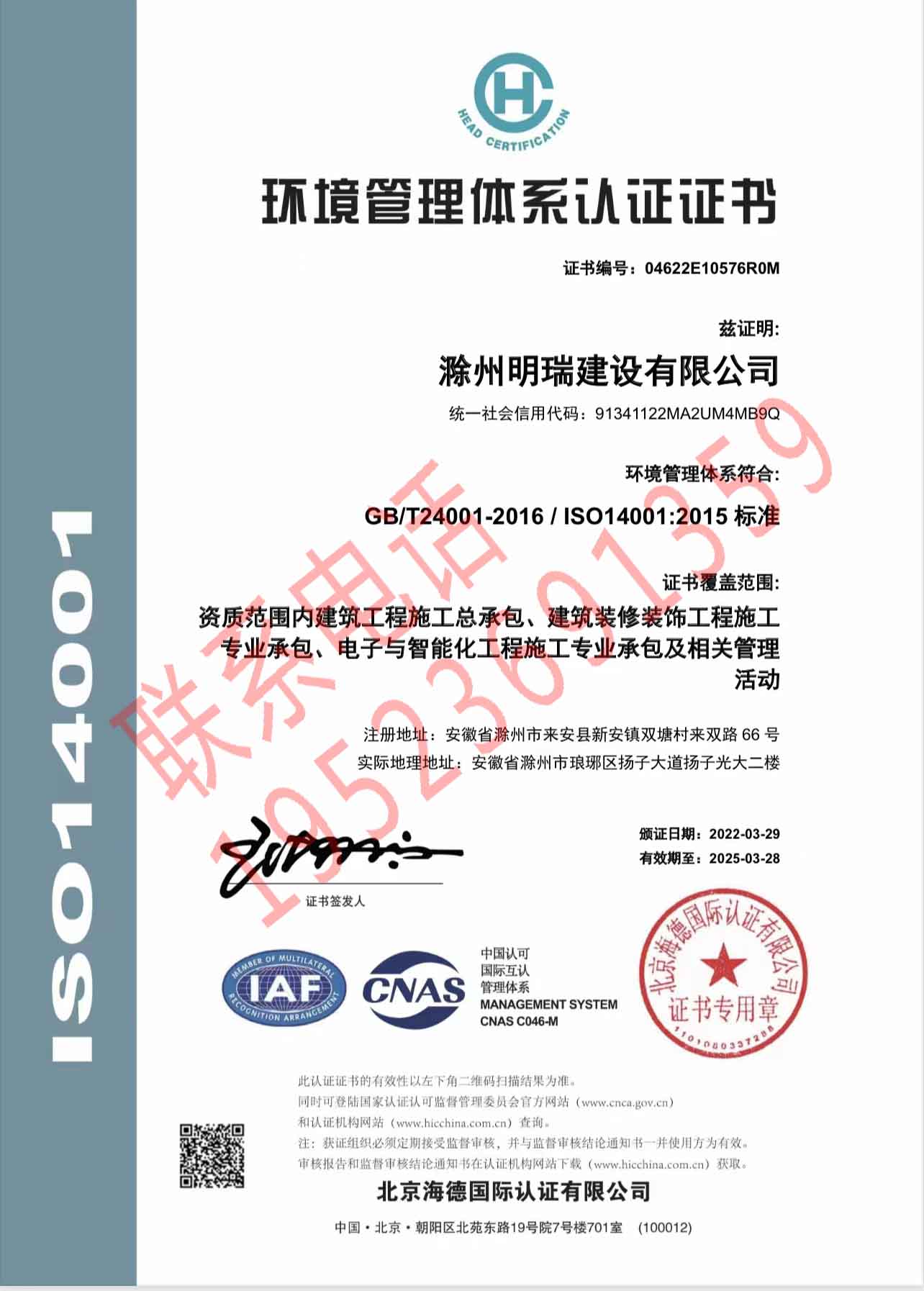 恭喜滁州明瑞建設有限公司獲得ISO三體系認證
