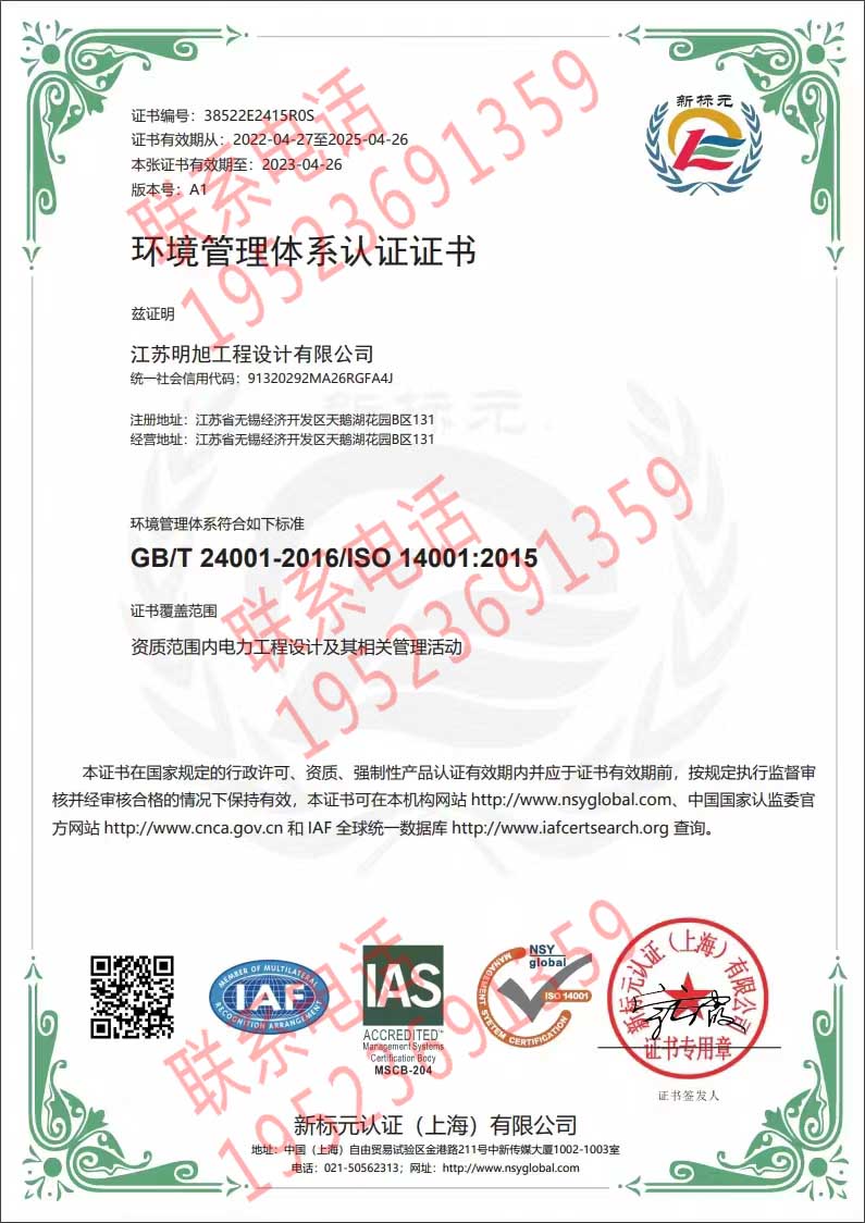 恭喜江蘇明旭工程設計有限公司獲得ISO三體系認證證書