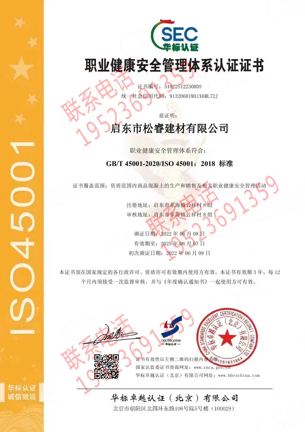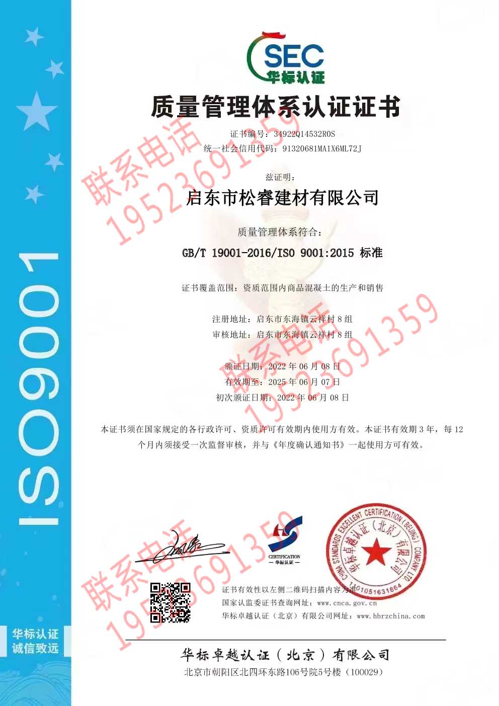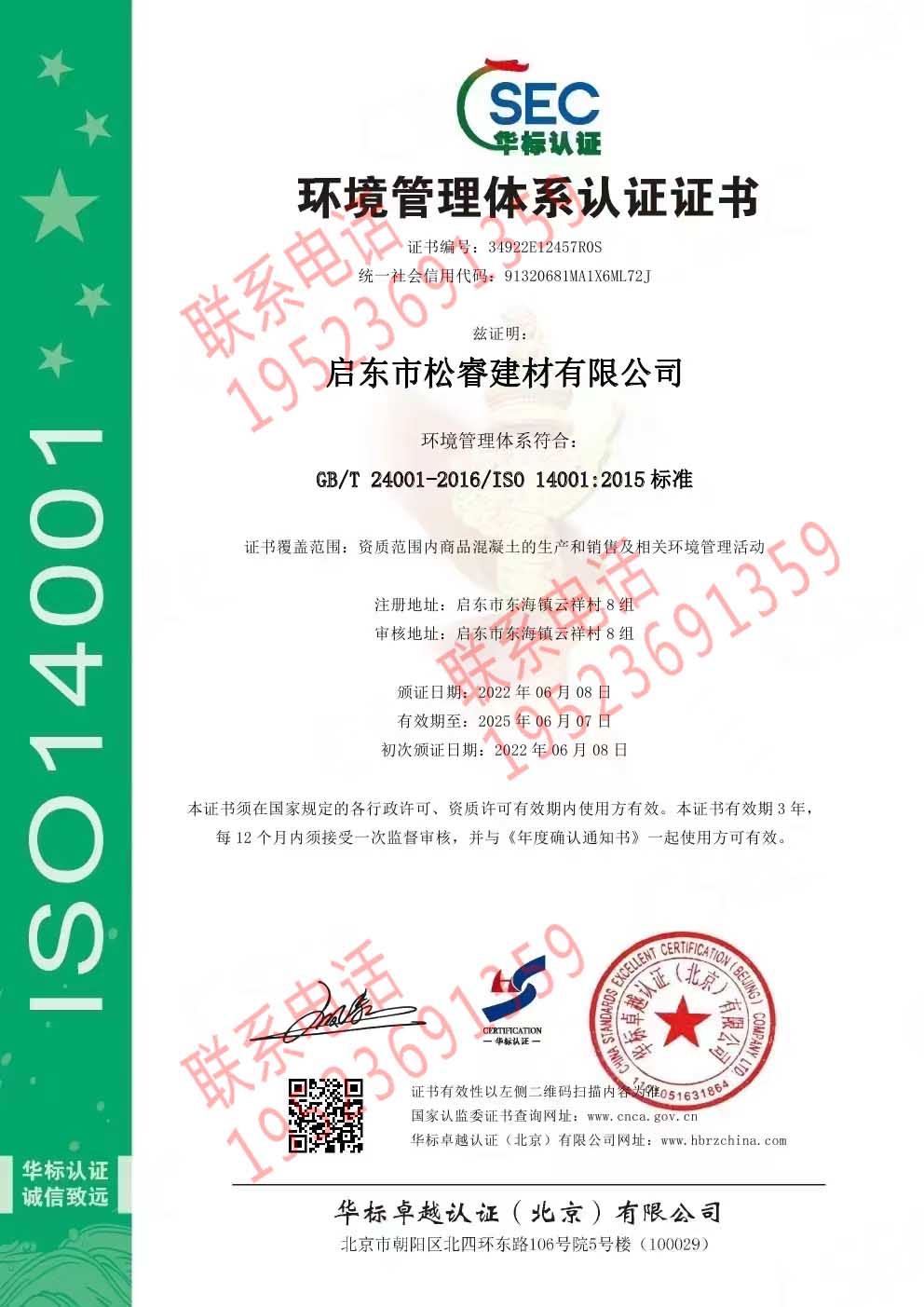 恭喜啟東市松睿建材有限公司獲得ISO三體系認(rèn)證證書