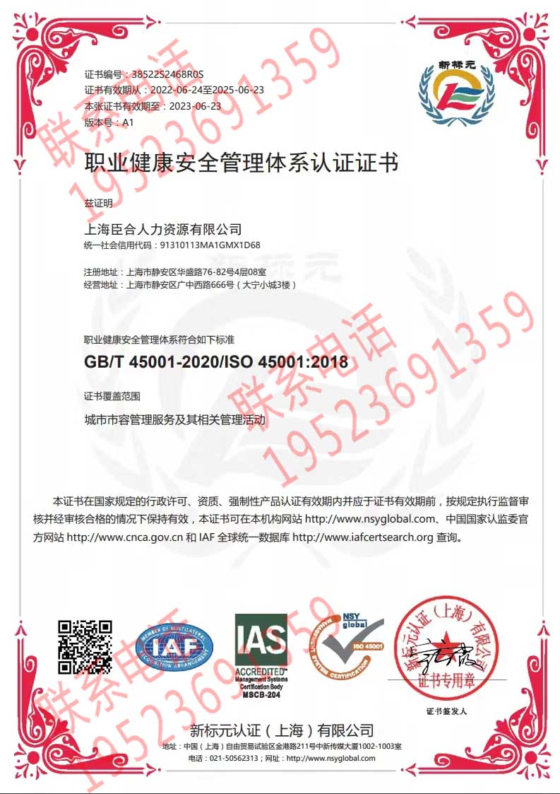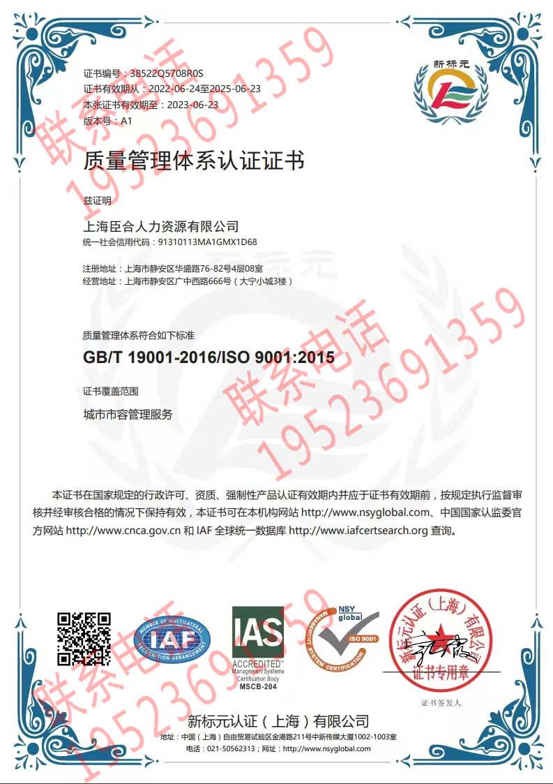 恭喜上海臣合人力資源有限公司獲得ISO三體系認(rèn)證證書(shū)
